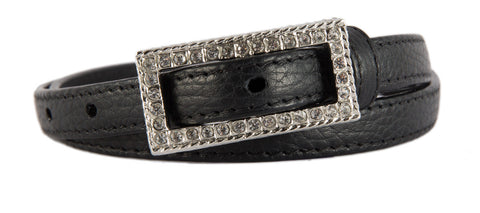 Our Skinny Crystal belt will dress up any outfit. Handcrafted in NYC.This buckle fits best with a 0.5 inch belt strap. We recommend wearing this belt on your waist with dresses or skirts. Please see our size chart -- you may have to wear one size smaller than the belts you wear with jeans.