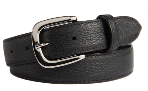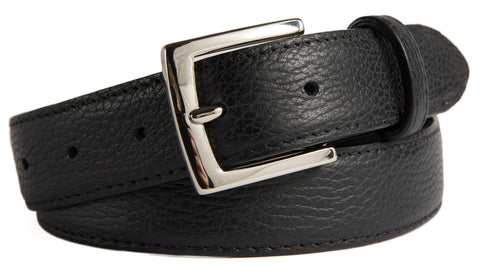 A perfect everyday belt and a top seller in our classic collection. Our stylish Signature belts offer a modern twist on classic belt. This buckle is made of solid brass and comes in 4 finishes -- shiny silver, brushed (matte) silver, gold, and antiqued brass.This 1.25-inch width belt is super versatile -- great for jeans, dresses, or dress pants.